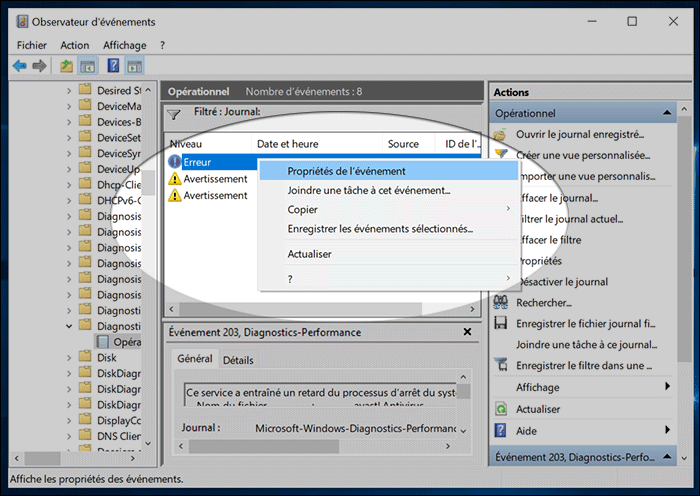 Passons à l’extinction du système, qui est peut-être moins important que le démarrage, mais peut vite devenir agaçant quand on souhaite s’assurer que la machine s’est bien éteinte avant de quitter son poste de travail. Comme pour le démarrage, des logiciels peuvent en être la cause et cela est moins simple à identifier que ceux qui se lancent à l’allumage. Pour cette tâche, il faudra passer par l’observateur d’évènement.