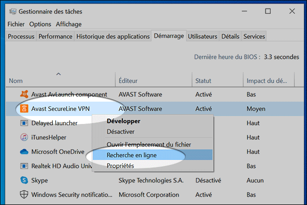 C’est souvent la principale cause de ralentissement. Lors de l’installation de logiciels ou d’applications tiers, ceux-ci se configurent pour se lancer au démarrage. Même une fois arrivé sur le bureau, il est impossible pendant plusieurs secondes de lancer une tâche. Pour cela il est nécessaire d’aller faire un tour dans les paramètres pour désactiver ceux qui ne sont pas indispensables. Bien entendu, ça n’empêche pas le logiciel de fonctionner lorsqu’on souhaite le lancer manuellement par la suite.